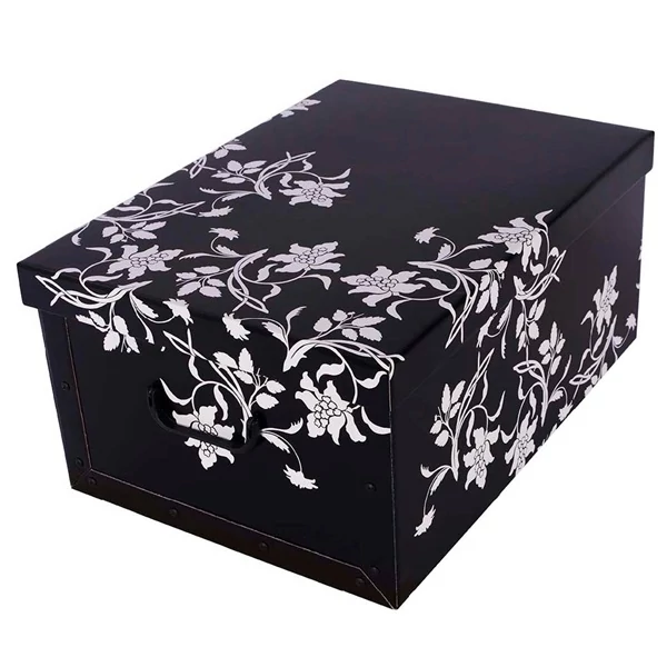 Praktikus karton tárolódoboz. Ideális játékok, ruhák, emlékek, ajándékok tárolására. Mérete 51 x 37 x 24 cm. Lapraszerelt.